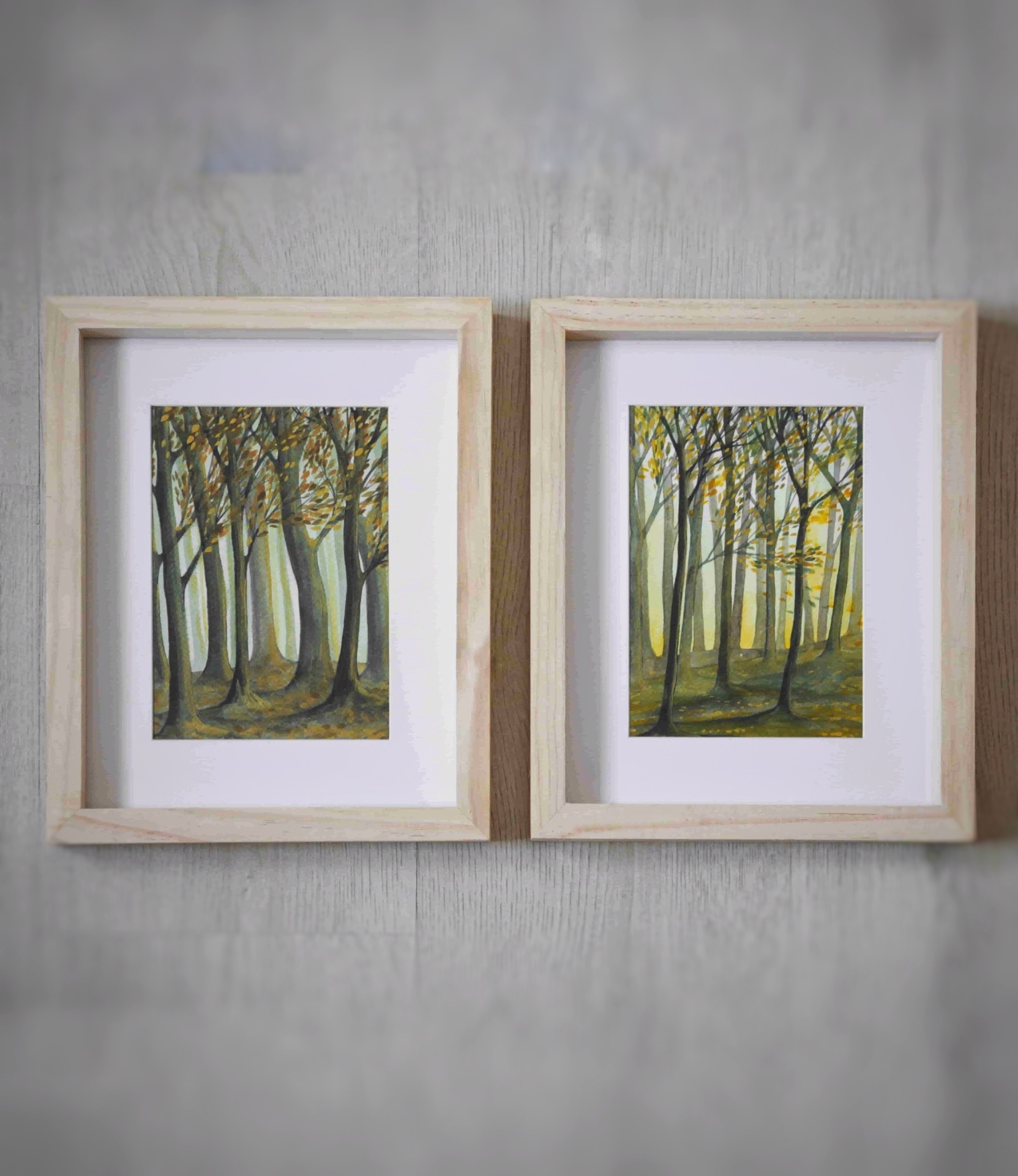 SKLADEM - cena je za sadu dvou obrázků. Včetně dřevěného rámu se sklem a paspartou.