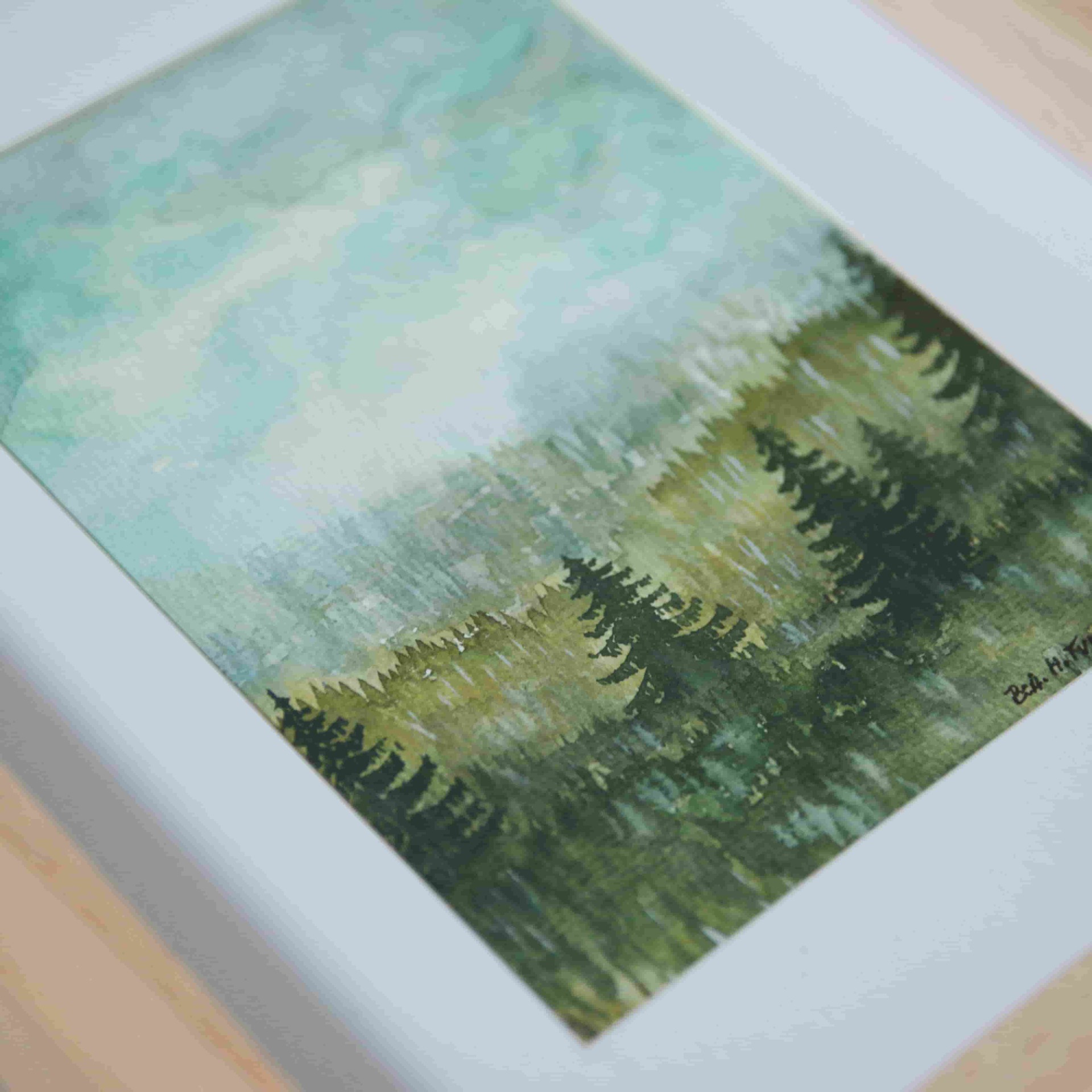 Originály jemných Lesních akvarelů, které jsou provedeny na akvarelový strukturovaný papír. Díla jsou včetně dřevěného minimalistického rámu, s paspartou a pod sklem.
