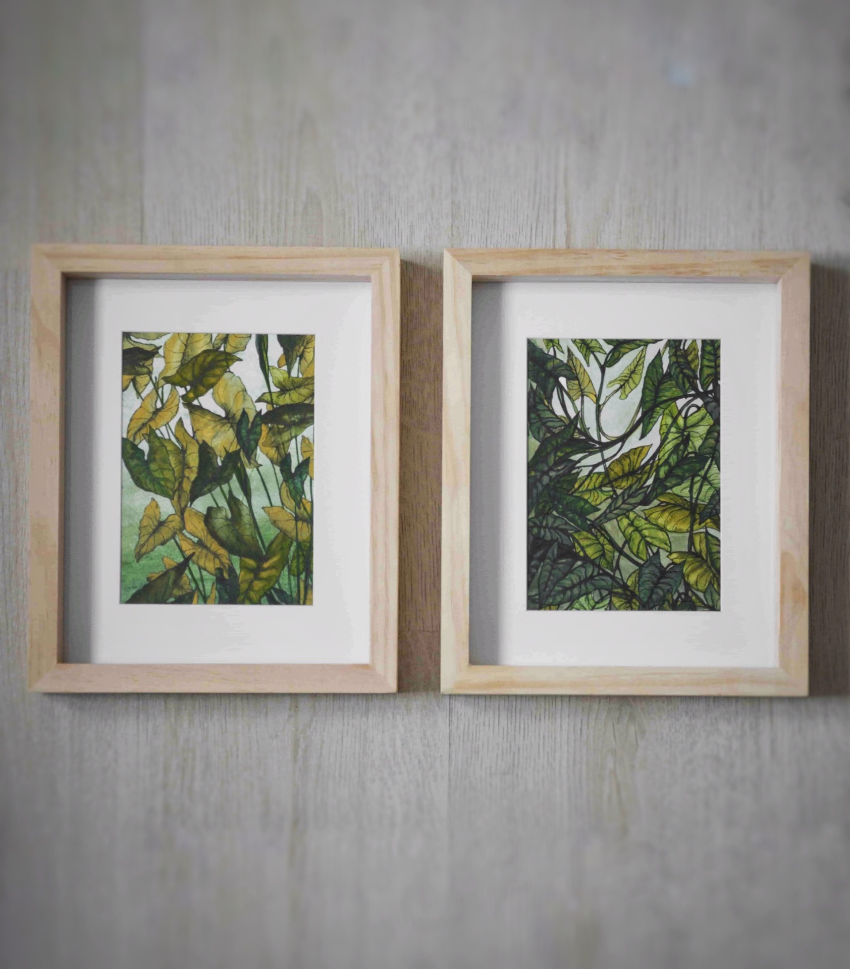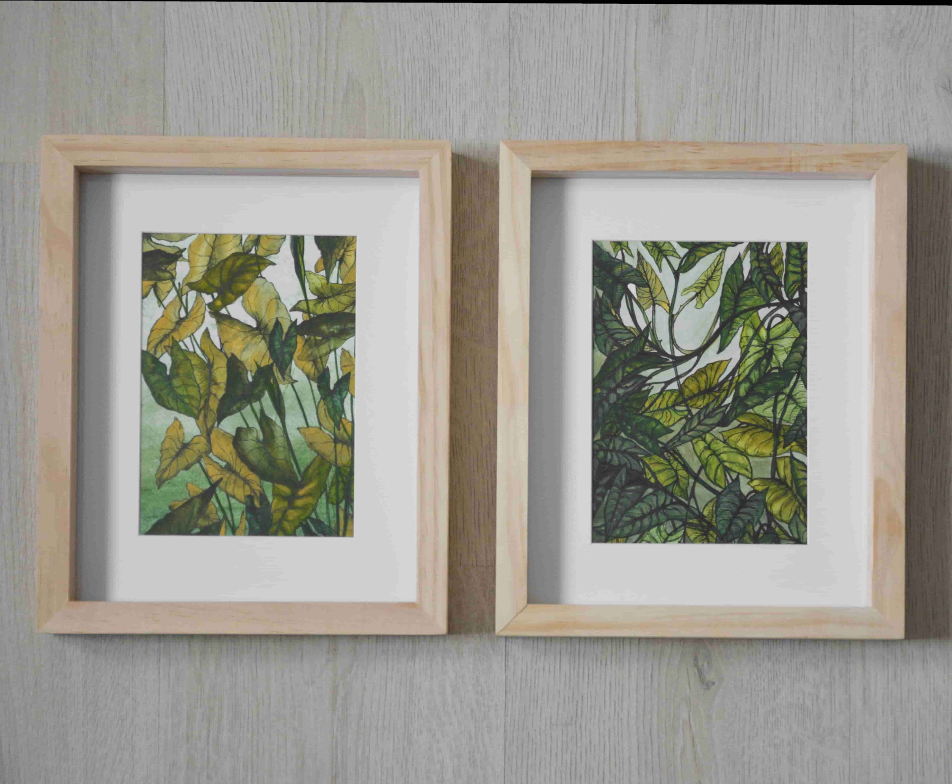 SKLADEM - cena je za sadu dvou obrázků. Včetně dřevěného rámu se sklem a paspartou.