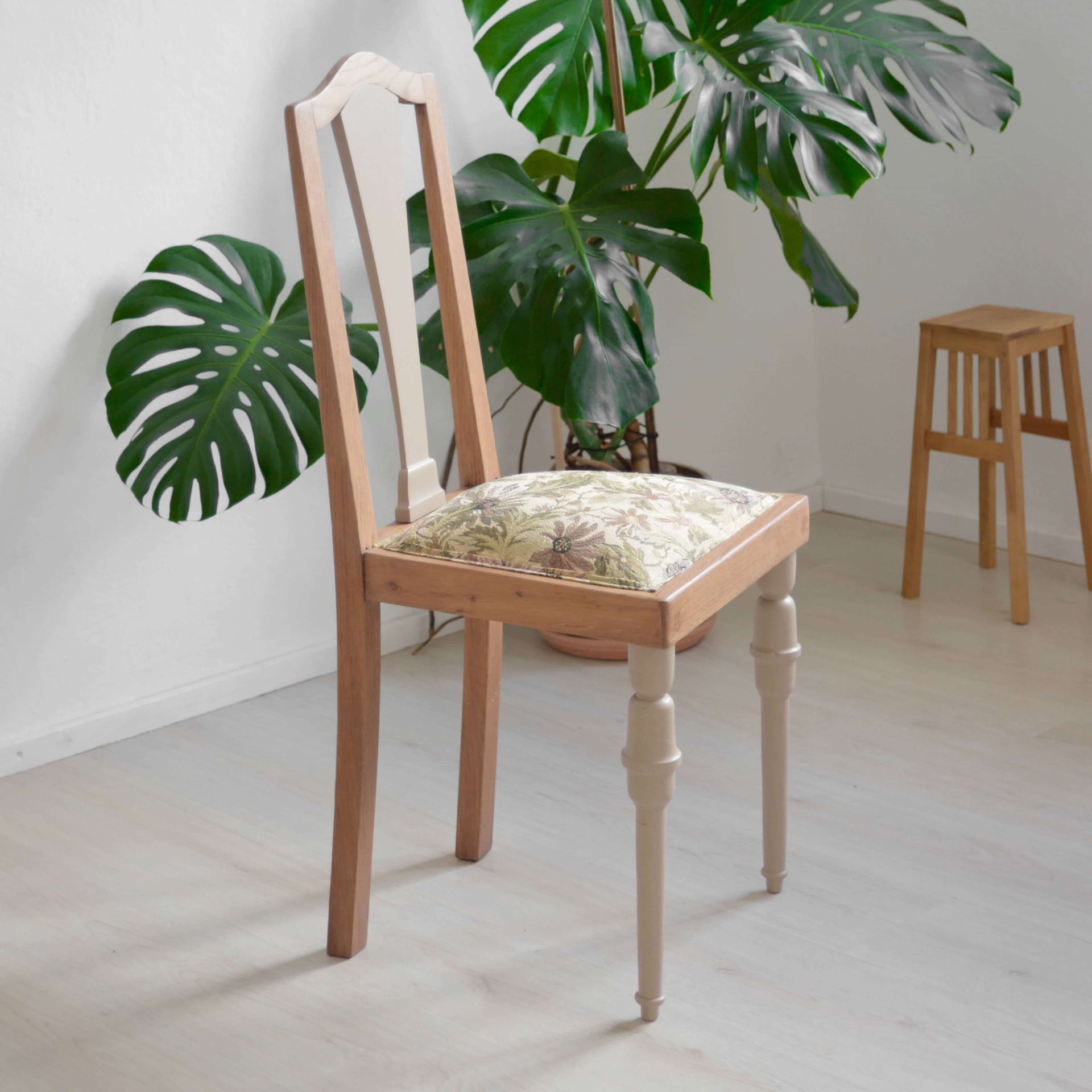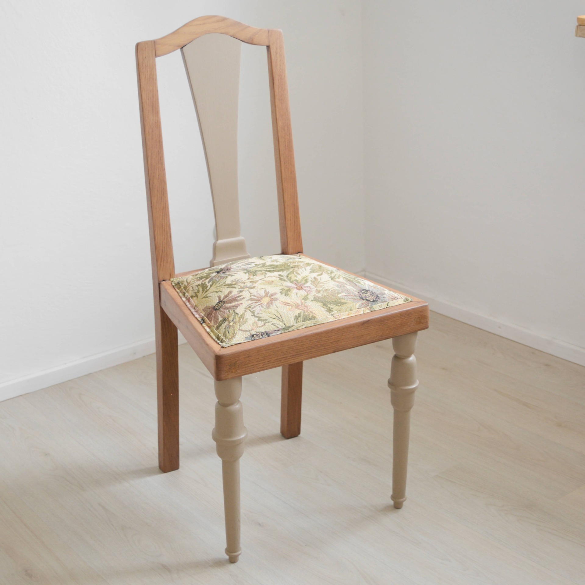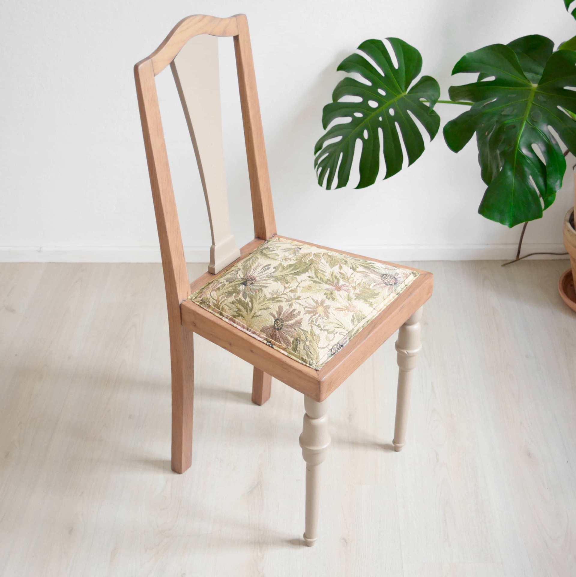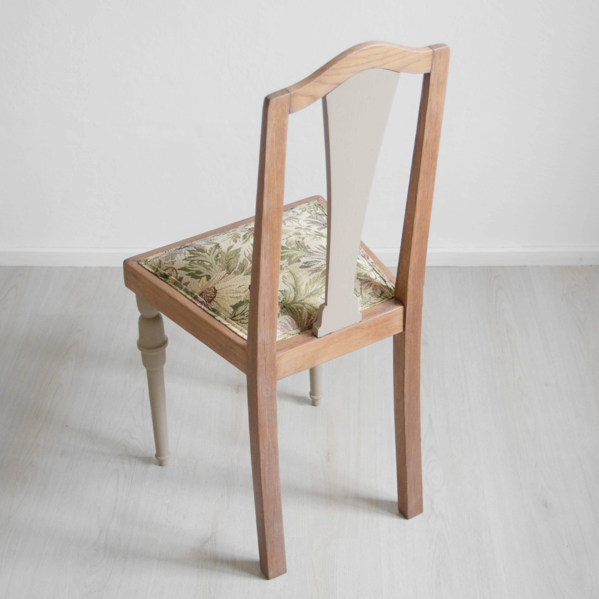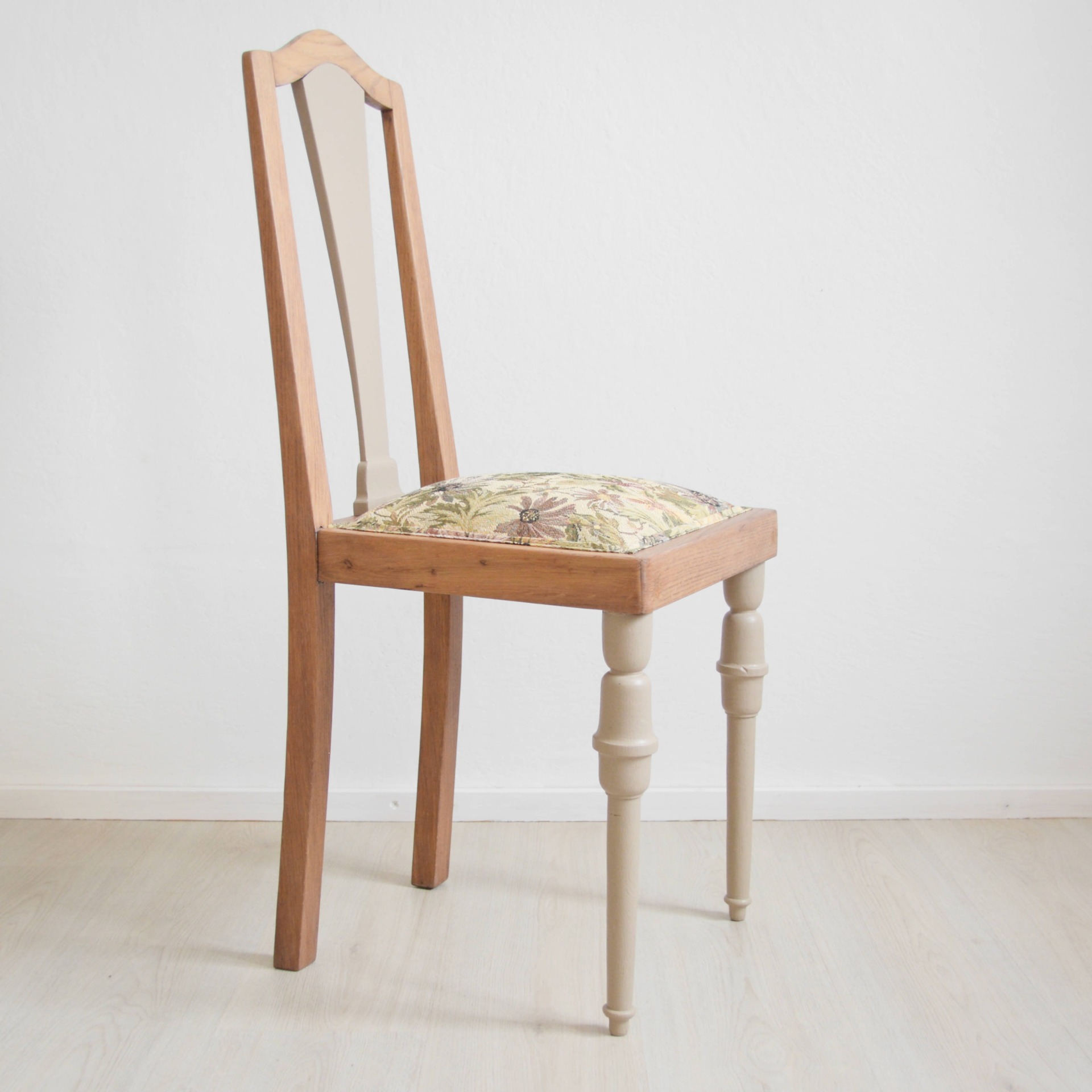 Židle z tvrdého dubového dřeva velmi elegantních tvarů. Po kompletní renovaci je pevná a bytelná. Vyznačuje se jemně tvarovanou konstrukcí. U jídelního či pracovního stolu bude naprosto dokonalá.
