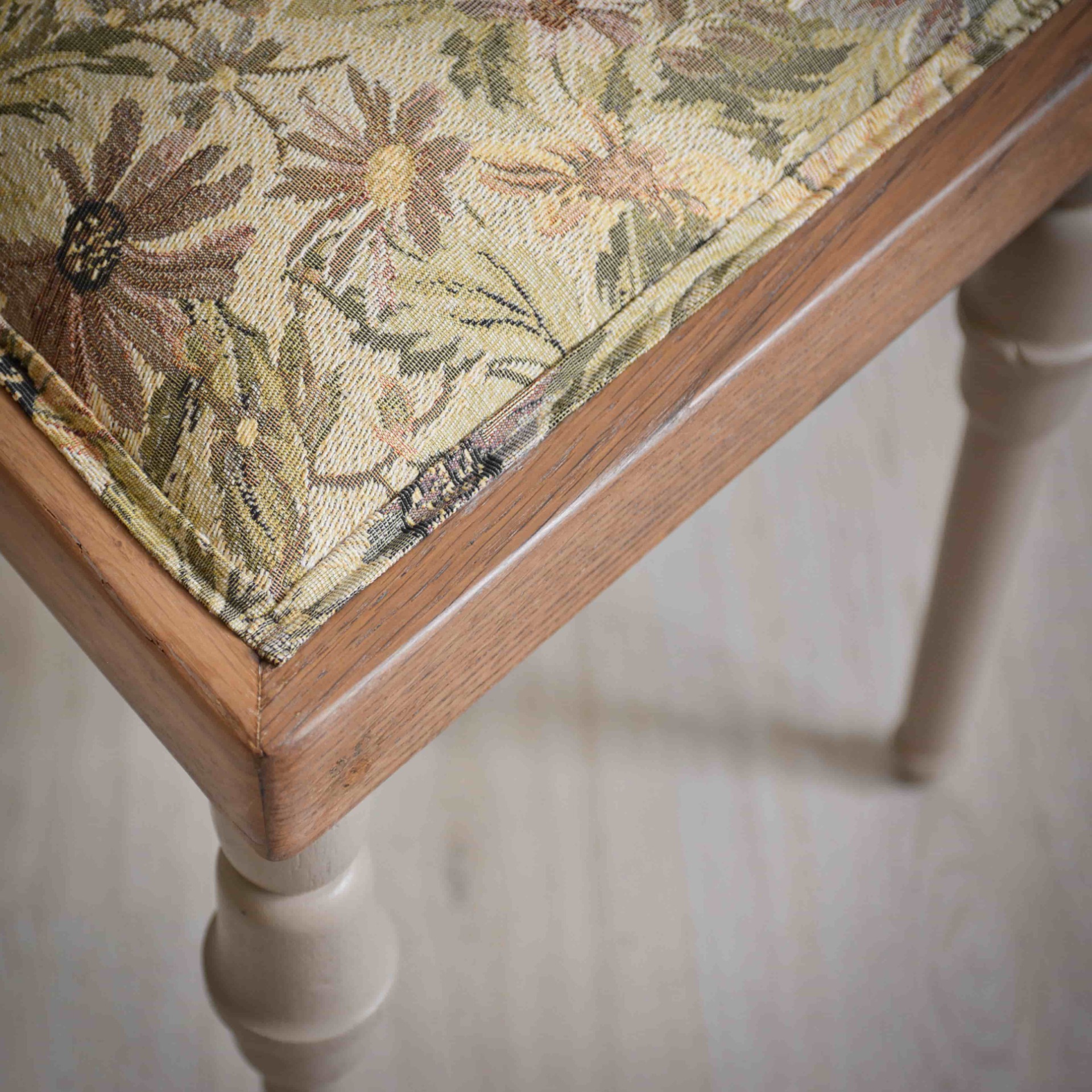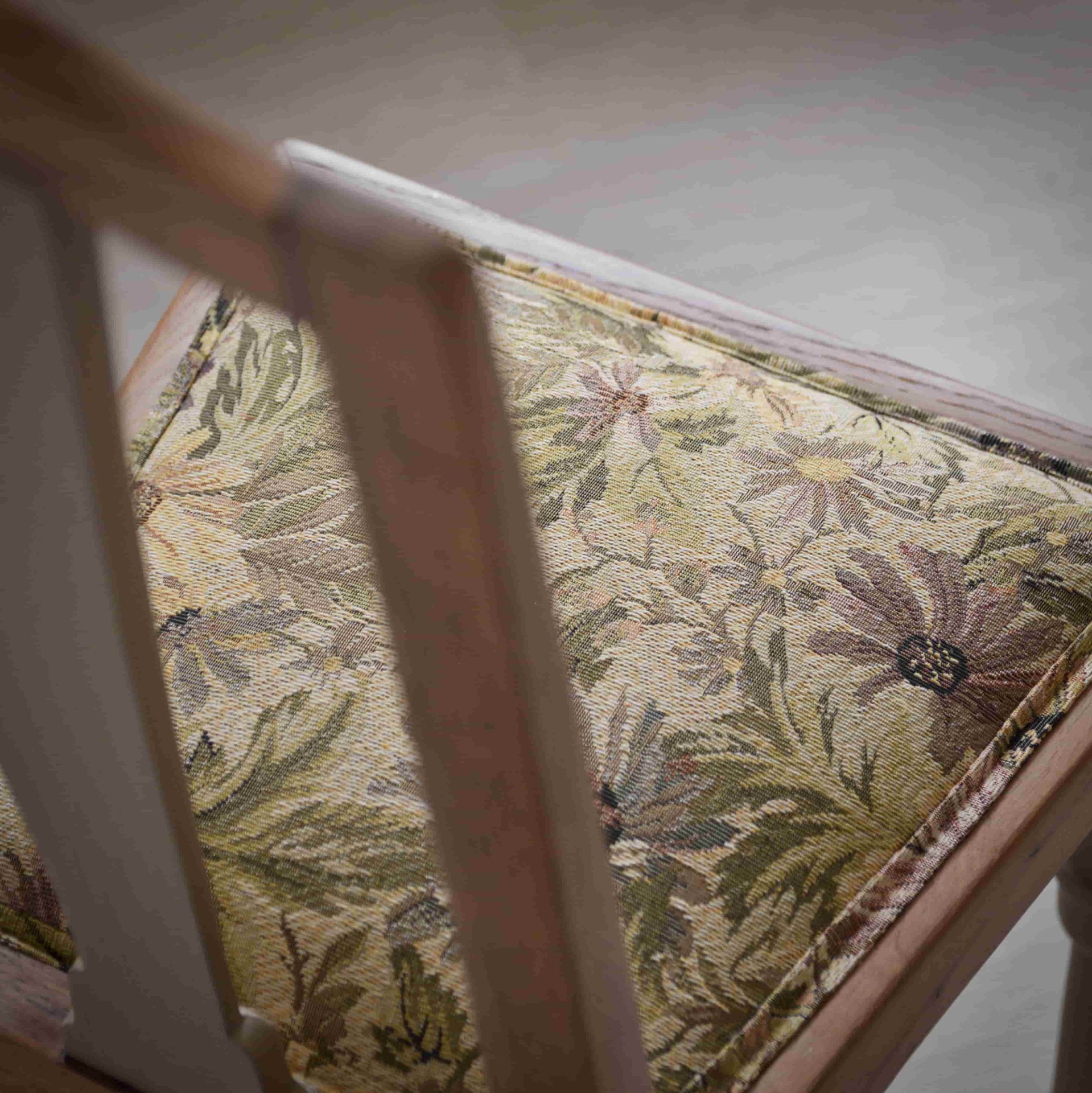 Čalounění je zcela nové, výplně jsme volili v moderním pojetí. Je pohodlná i při dlouhém sezení. Látku jsme vybrali s květovaným tkaním. Látka je velice odolná, strukturovaná a ve světle šedo béžovém odstínu. Velice snadno se čistí a udržuje. Dobré rady pro údržbu jsou součástí.