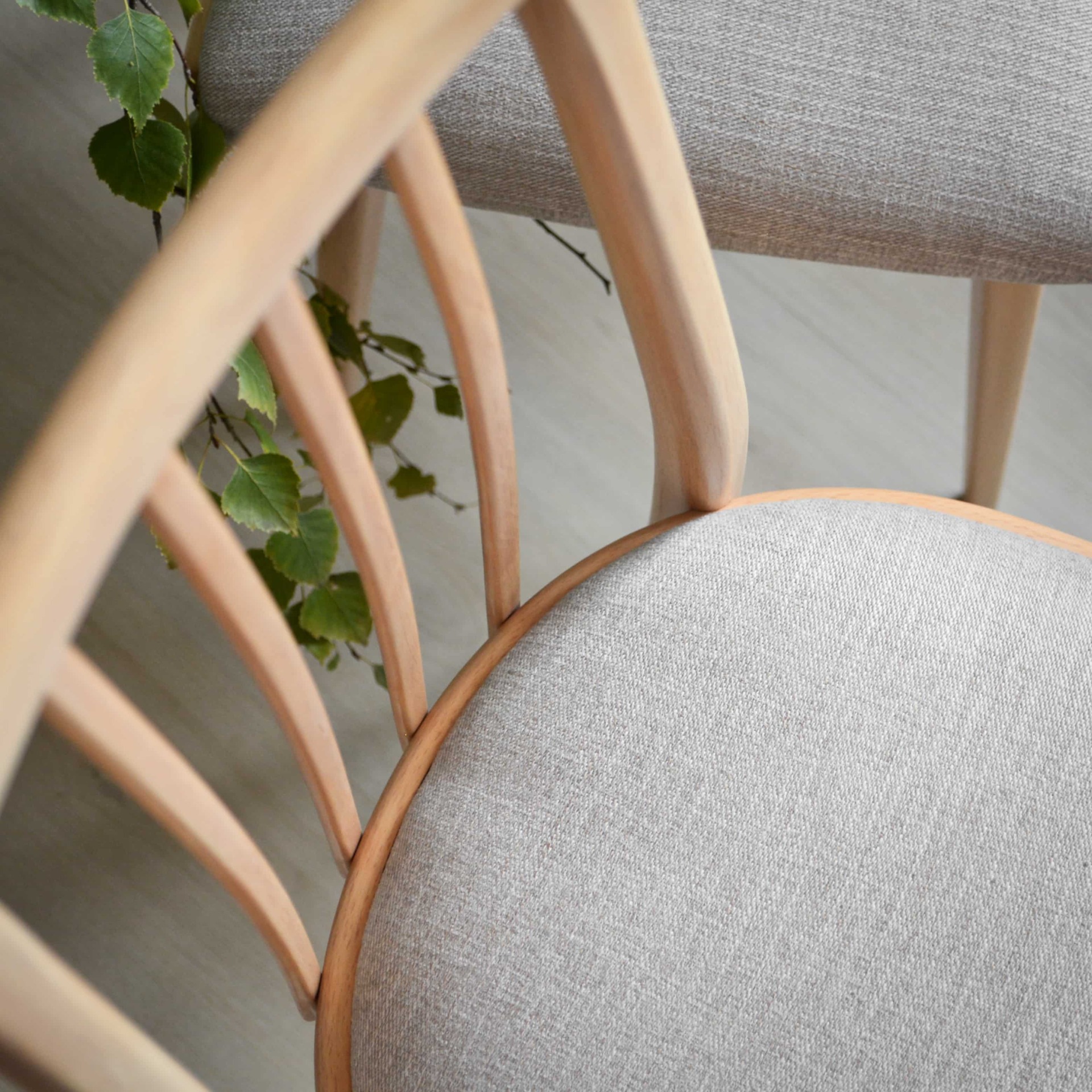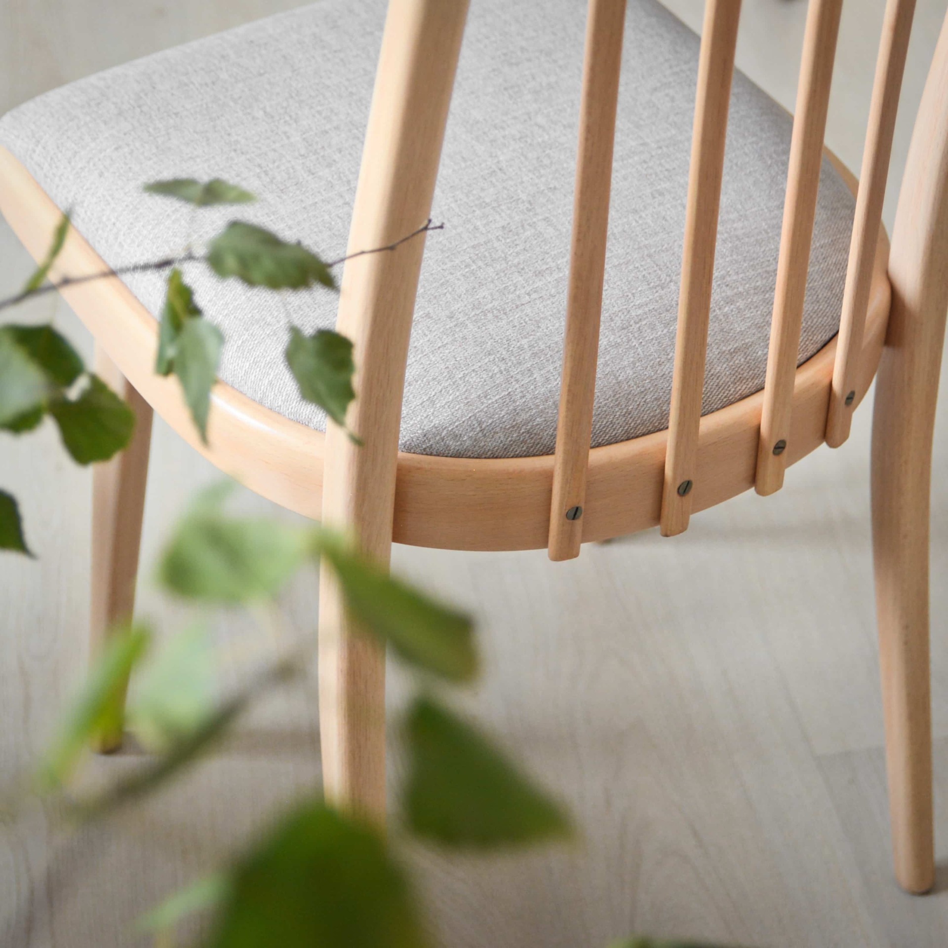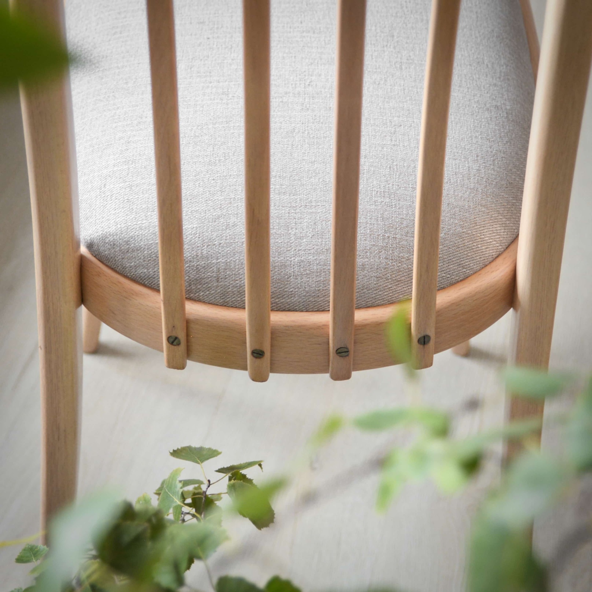 Dřevo jsme následně ošetřili tvrdým olejem na nábytek s bělící složkou. Ta ztlumila jakékoliv teplé odstíny, ale kresba dřeva zůstala patrná. Díky tomu jsou židle neutrální a snadno je můžete kombinovat s ostatním nábytkem v interiéru.