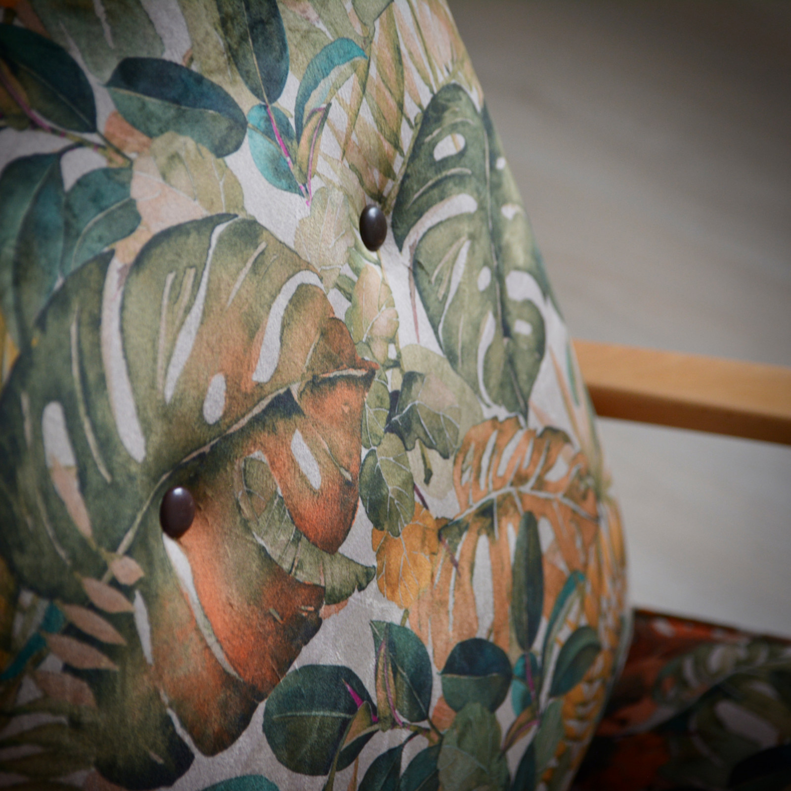 Staré čalounění jsme nejprve celé odstranili, bukovou konstrukci zpevnili a pustili se do důkladného broušení dřeva. Dřevo jsme následně ošetřili čirým tvrdým olejem do hedvábně hladkého povrchu.