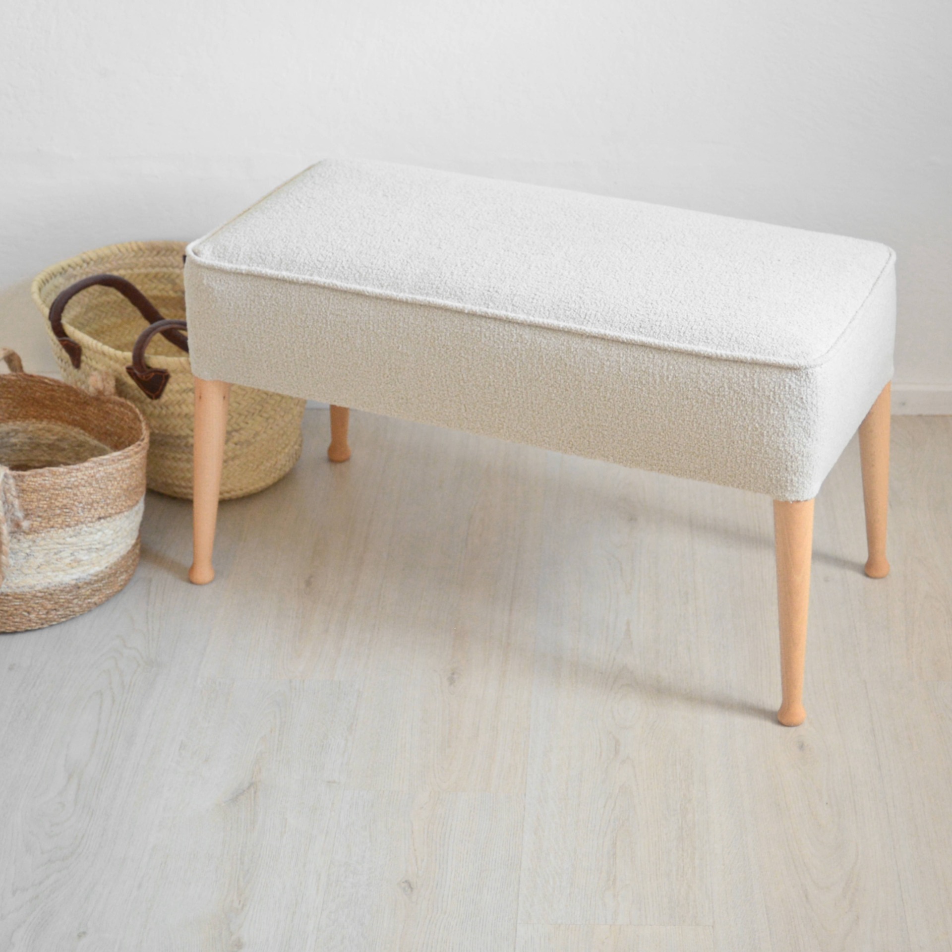 Látku jsme vybrali velmi odolnou a měkkou na dotek v odstínu smetanové. Povrch připomíná ovčí vlnu a má zajímavý plastický detail.