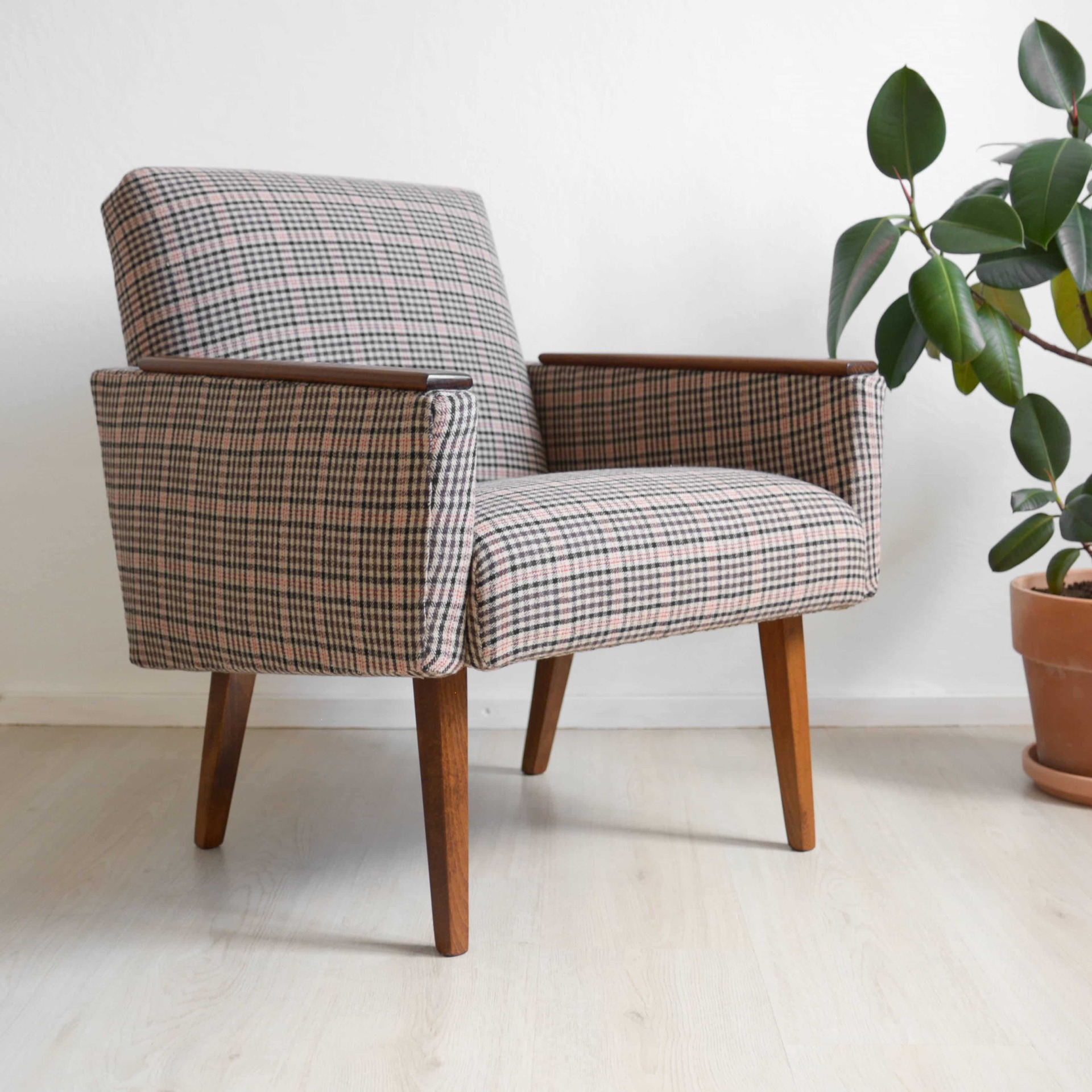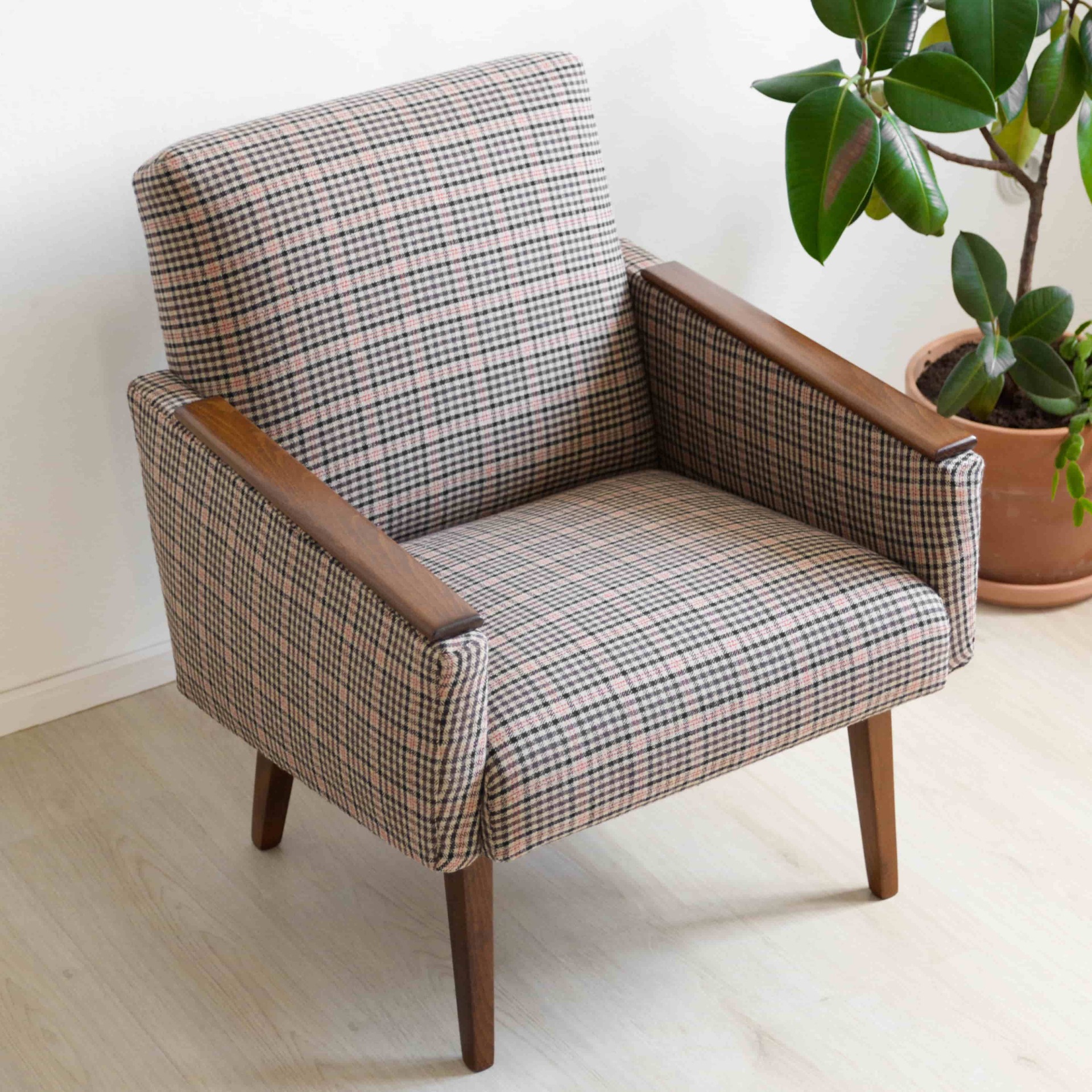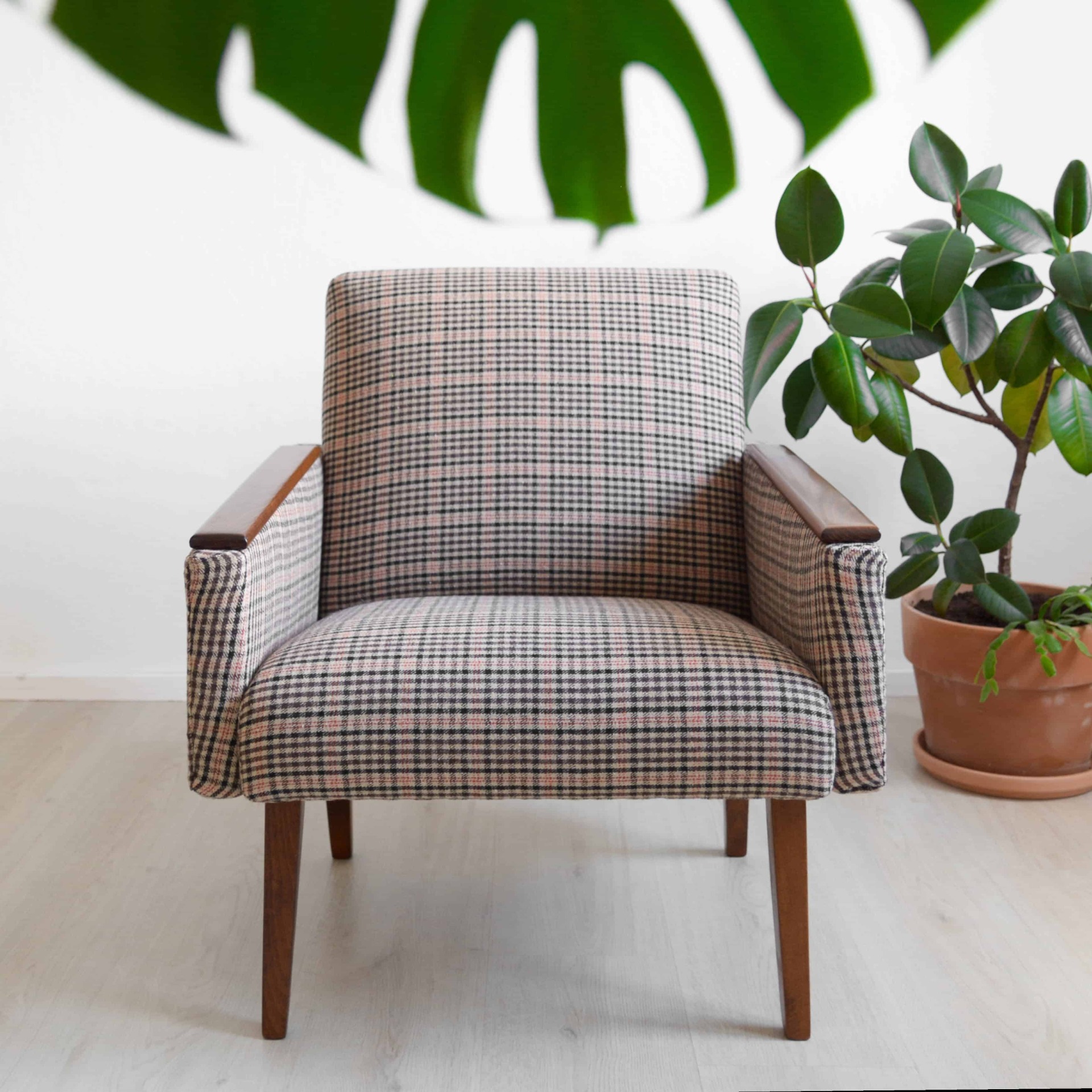 Dostal se k nám na renovaci další zajímavý typ starého retro křesla s područkami. Věnovali jsme mu náležitou péči, protože víme, že pohodlné křeslo je základ domova. Tento béžovo hnědý kus nábytku v elegantní kostce se hodí do moderních i klasických interiérů. Doplňte si sezení u pohovky nebo vytvořte nevšední čtecí či relaxační koutek.
