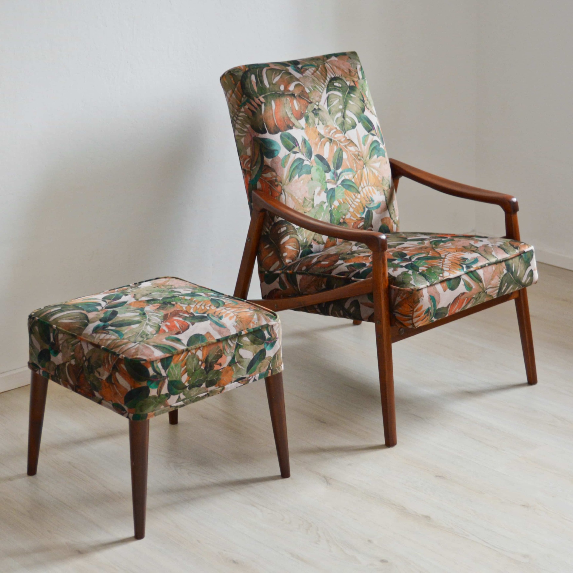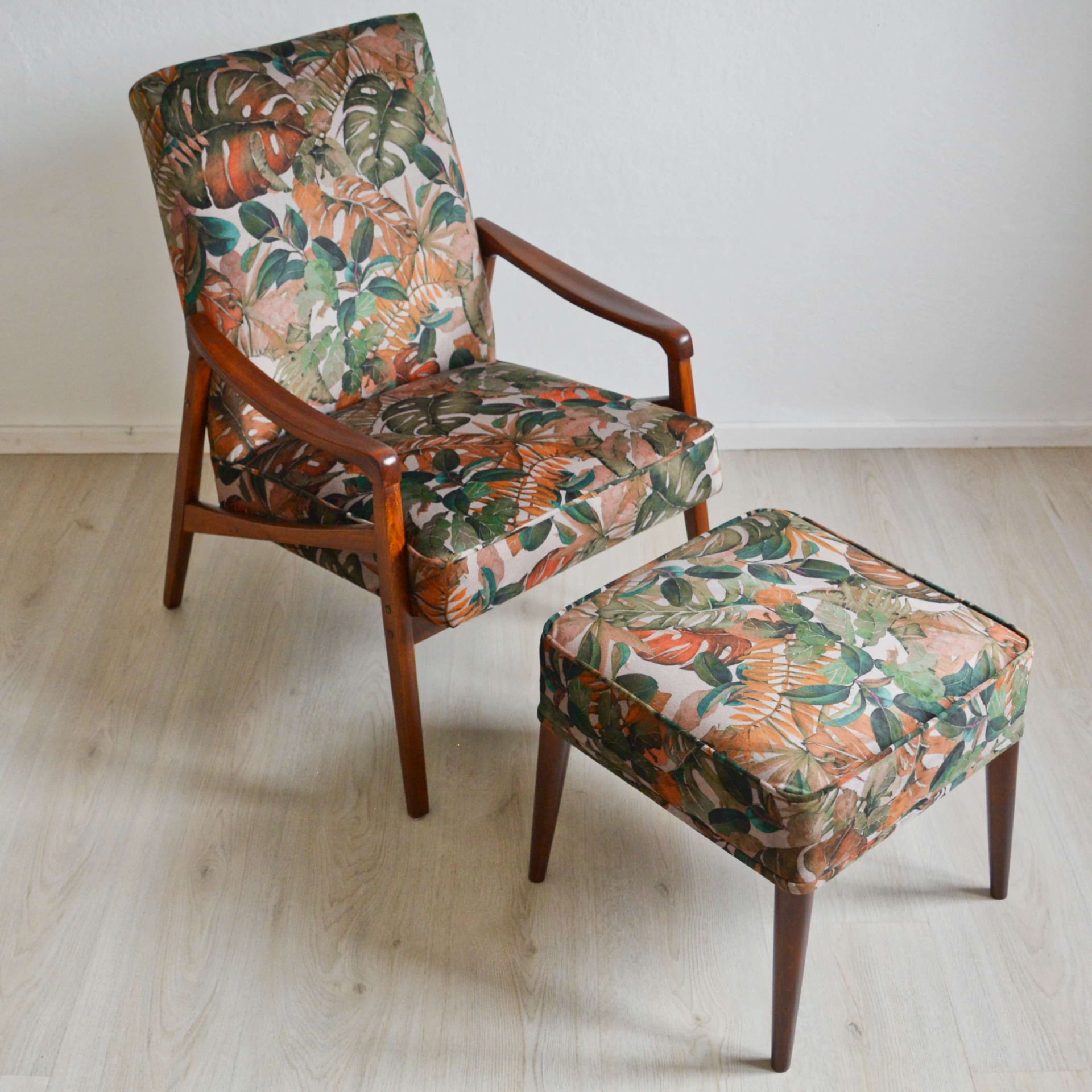 Je to ideální kousek do útulného čtecího nebo relaxačního koutku. Navíc v sestavě s praktickým taburetem, na které si odložíte unavené nožky. Doplní stylový, retro, ale i moderní interiér o výrazný prvek s přírodním motivem.