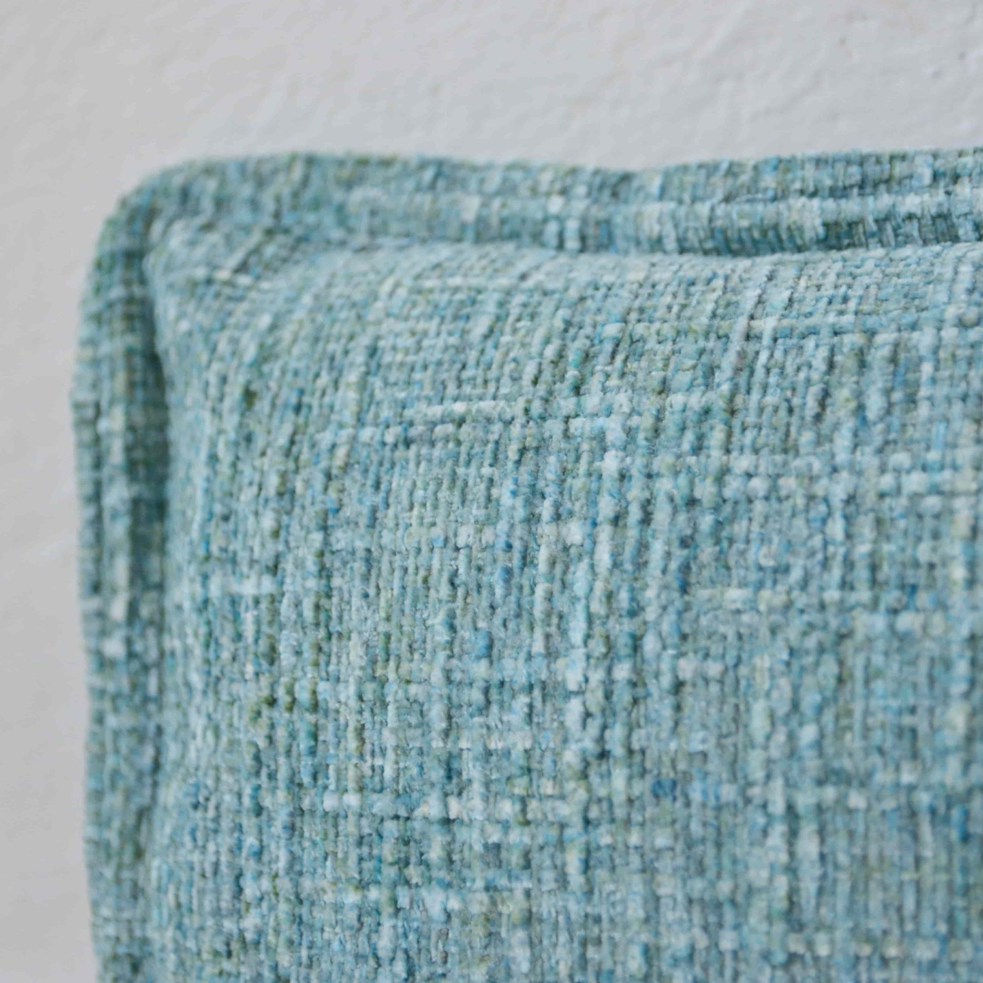Nevšední potah na podlouhlý polštář z krásné žinylkové látky ve strukturovaném modrém provedení.