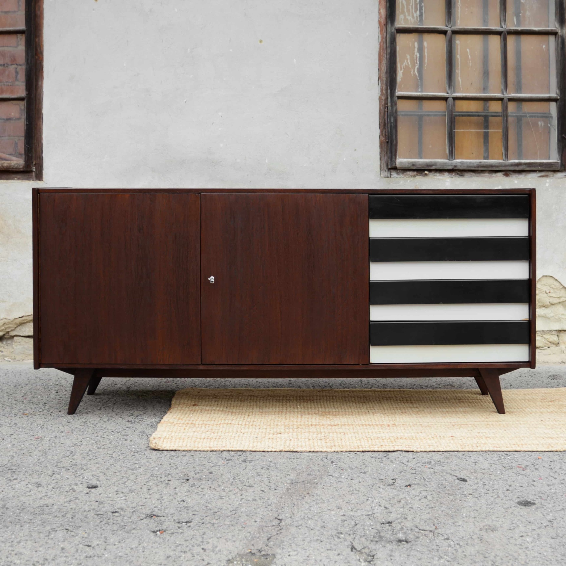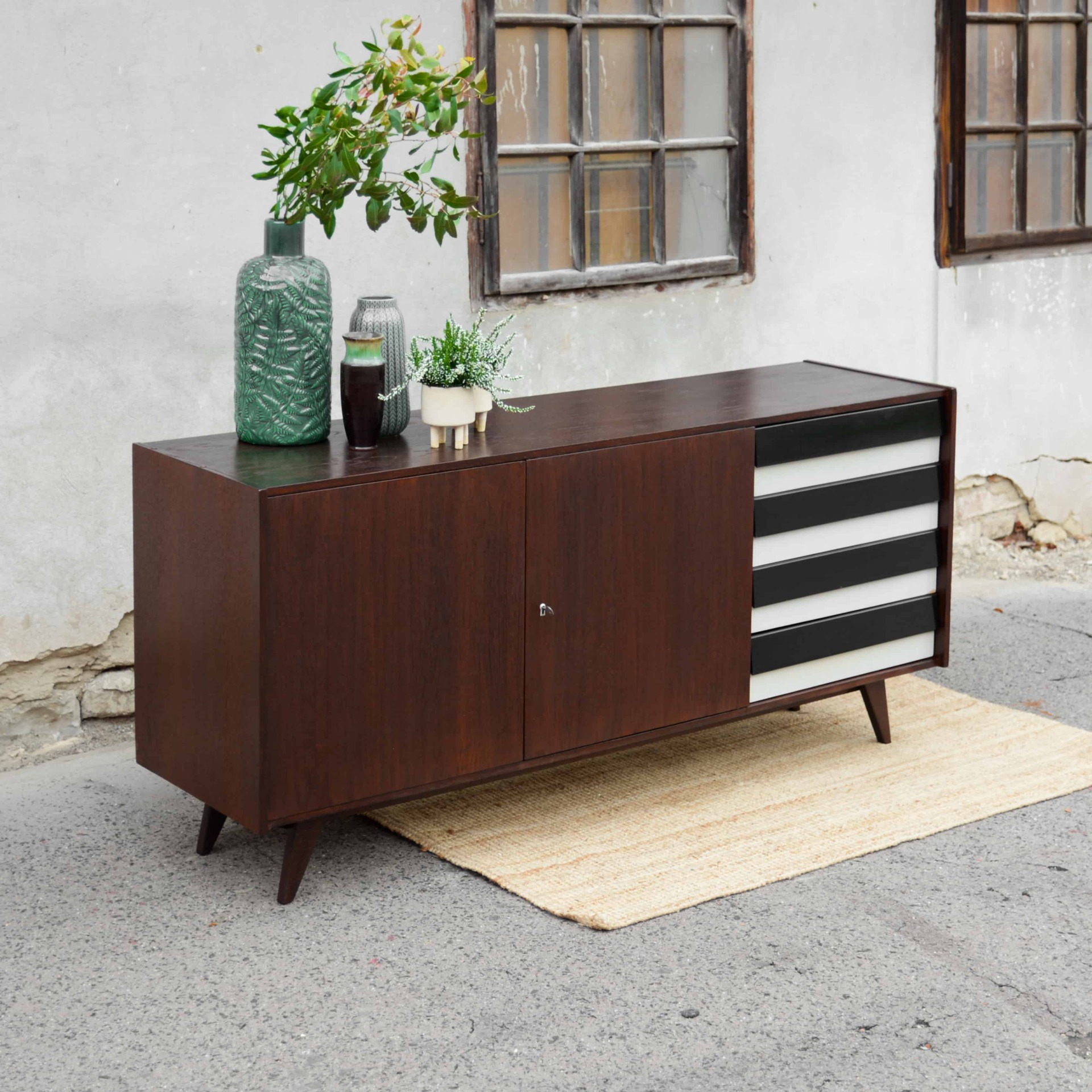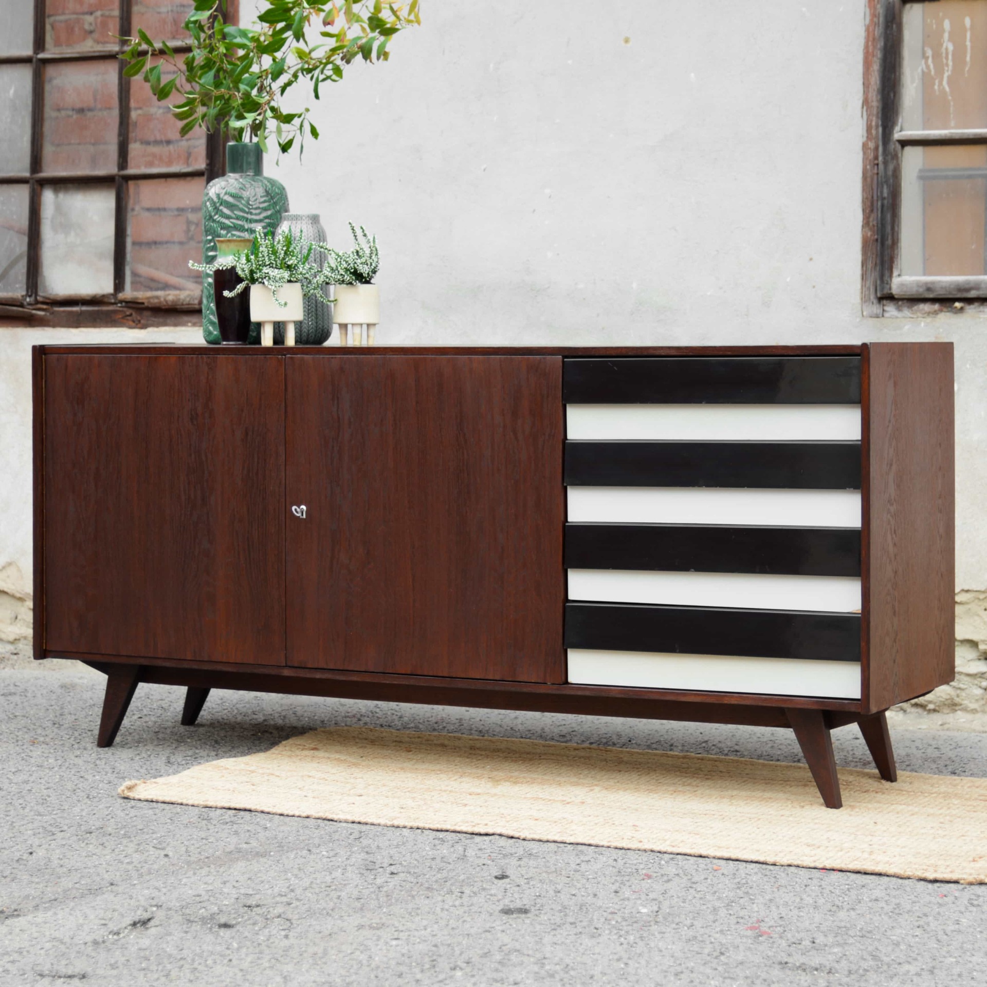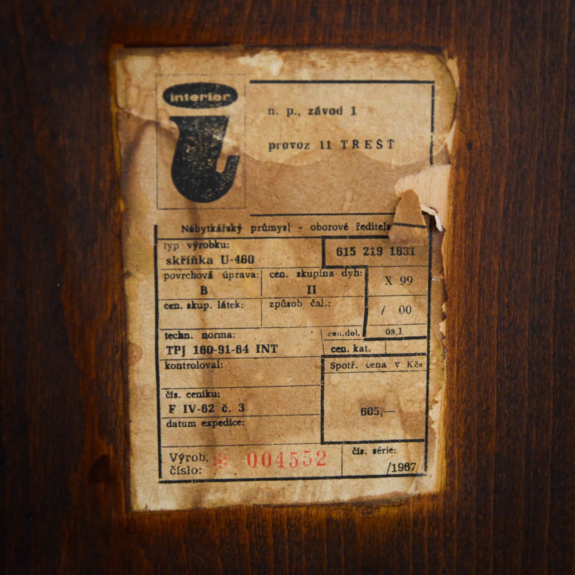Zájem o dnes již ikonickou skříňku U-460 neklesá, právě naopak, je oblíbená i dnes. Především pro svůj minimalistický a nadčasový design, který je zároveň funkční. Vejde se do ní opravdu hodně a na drobnější věci jsou tu hned čtyři šuplíky. Za jejím tvarem z roku 1958 stojí návrhář J.Jiroutek. Tento konkrétní kus je z roku 1967.