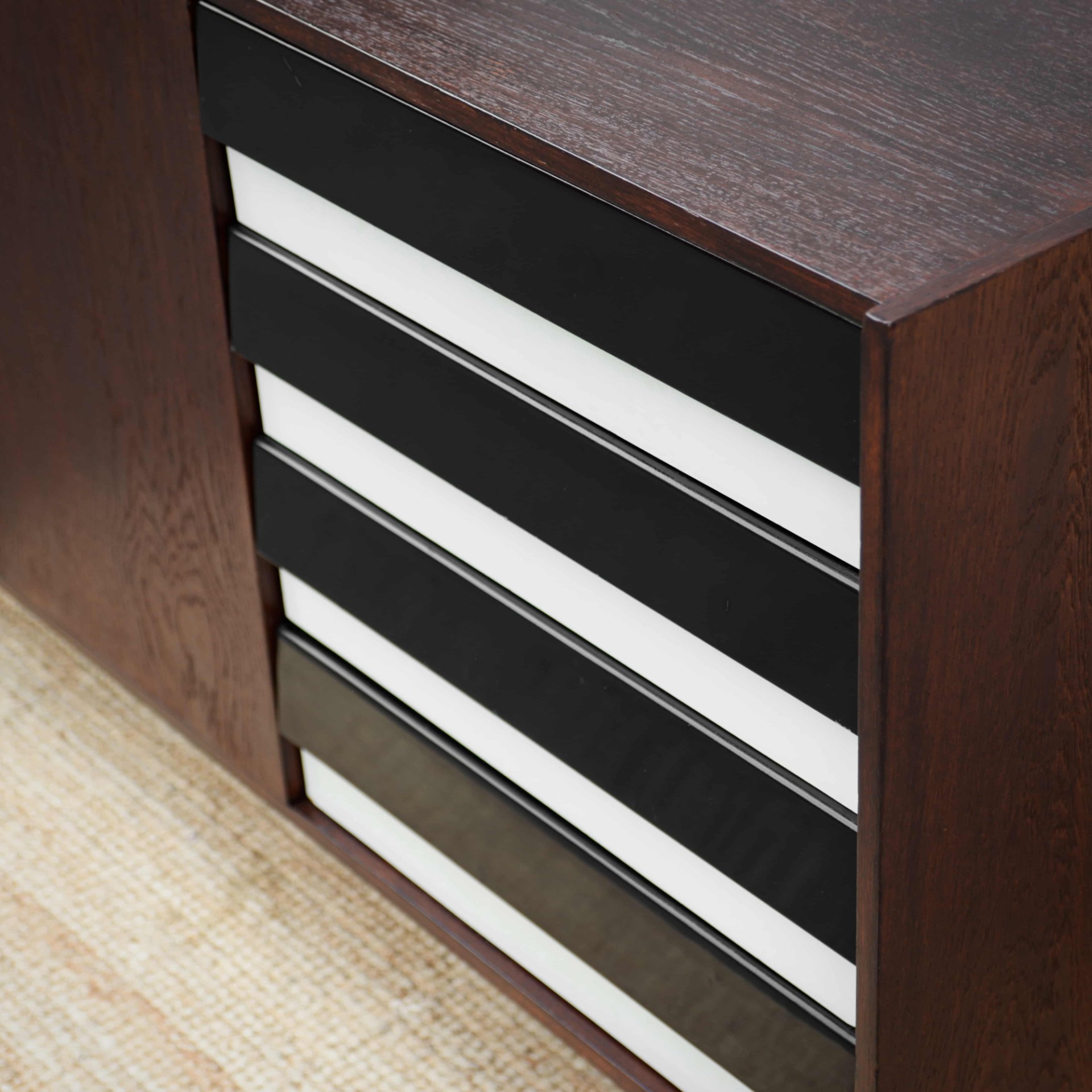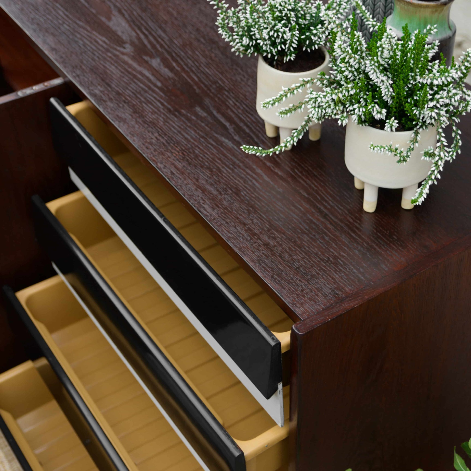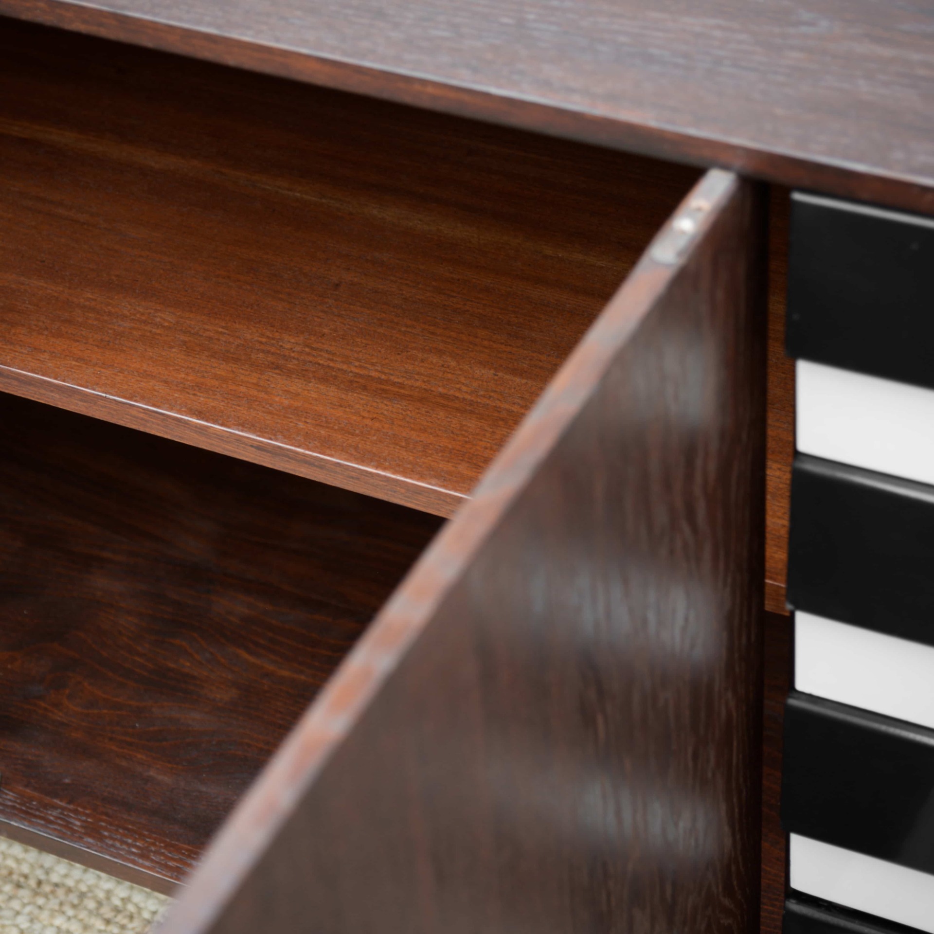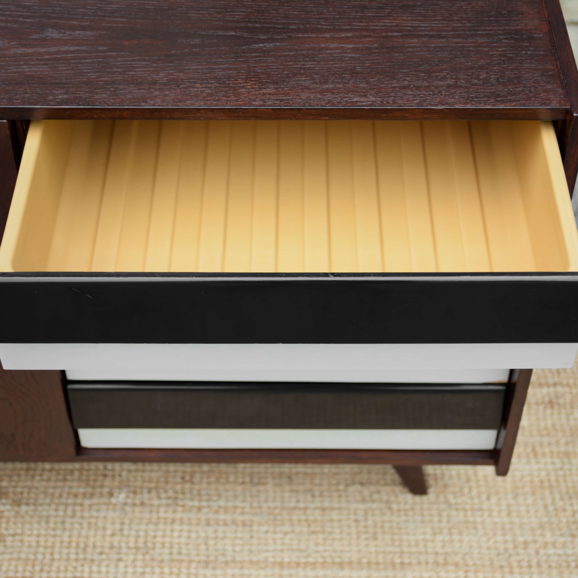 Zájem o dnes již ikonickou skříňku U-460 neklesá, právě naopak, je oblíbená i dnes. Především pro svůj minimalistický a nadčasový design, který je zároveň funkční. Vejde se do ní opravdu hodně a na drobnější věci jsou tu hned čtyři šuplíky. Za jejím tvarem z roku 1958 stojí návrhář J.Jiroutek. Tento konkrétní kus je z roku 1967.