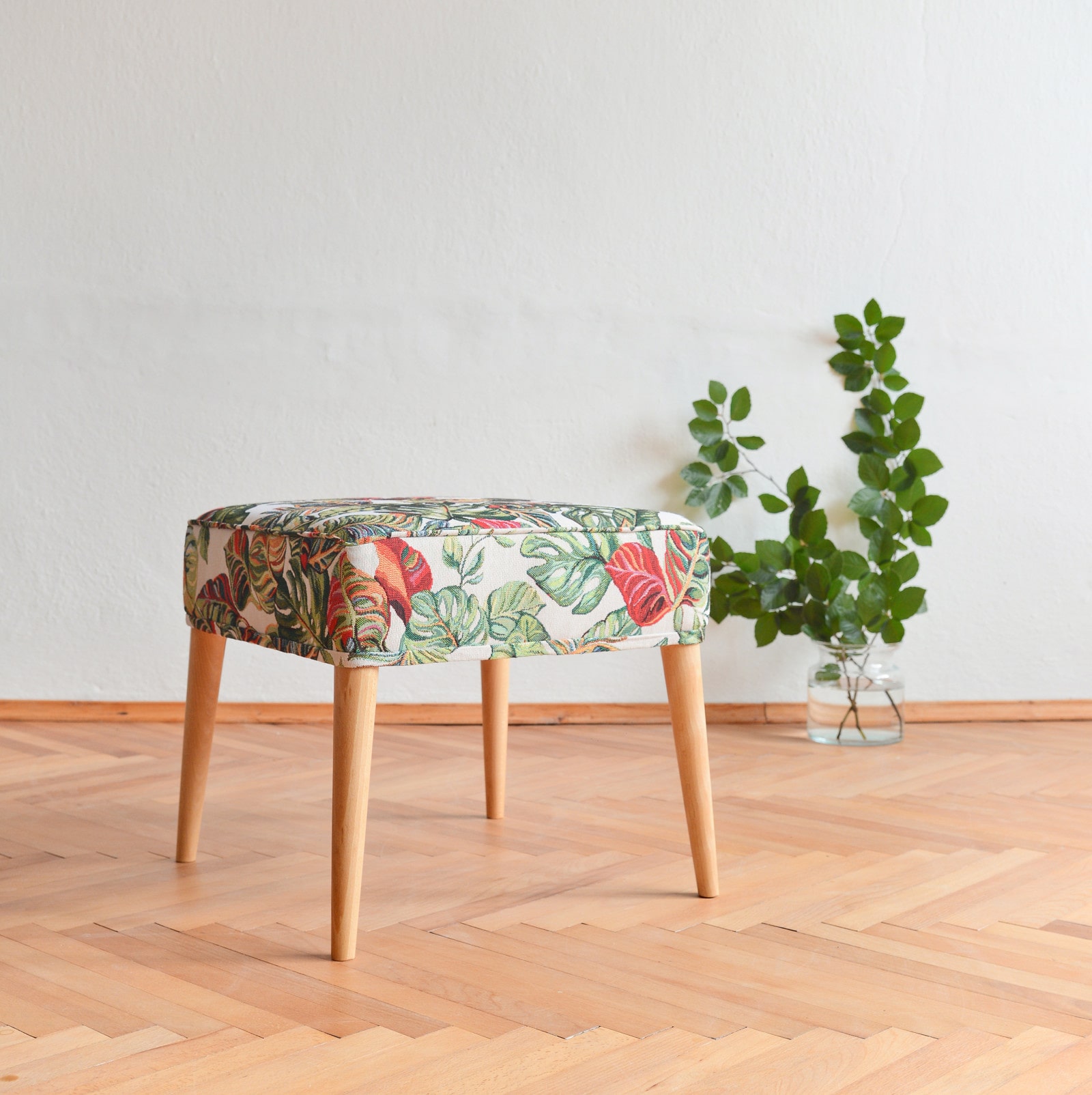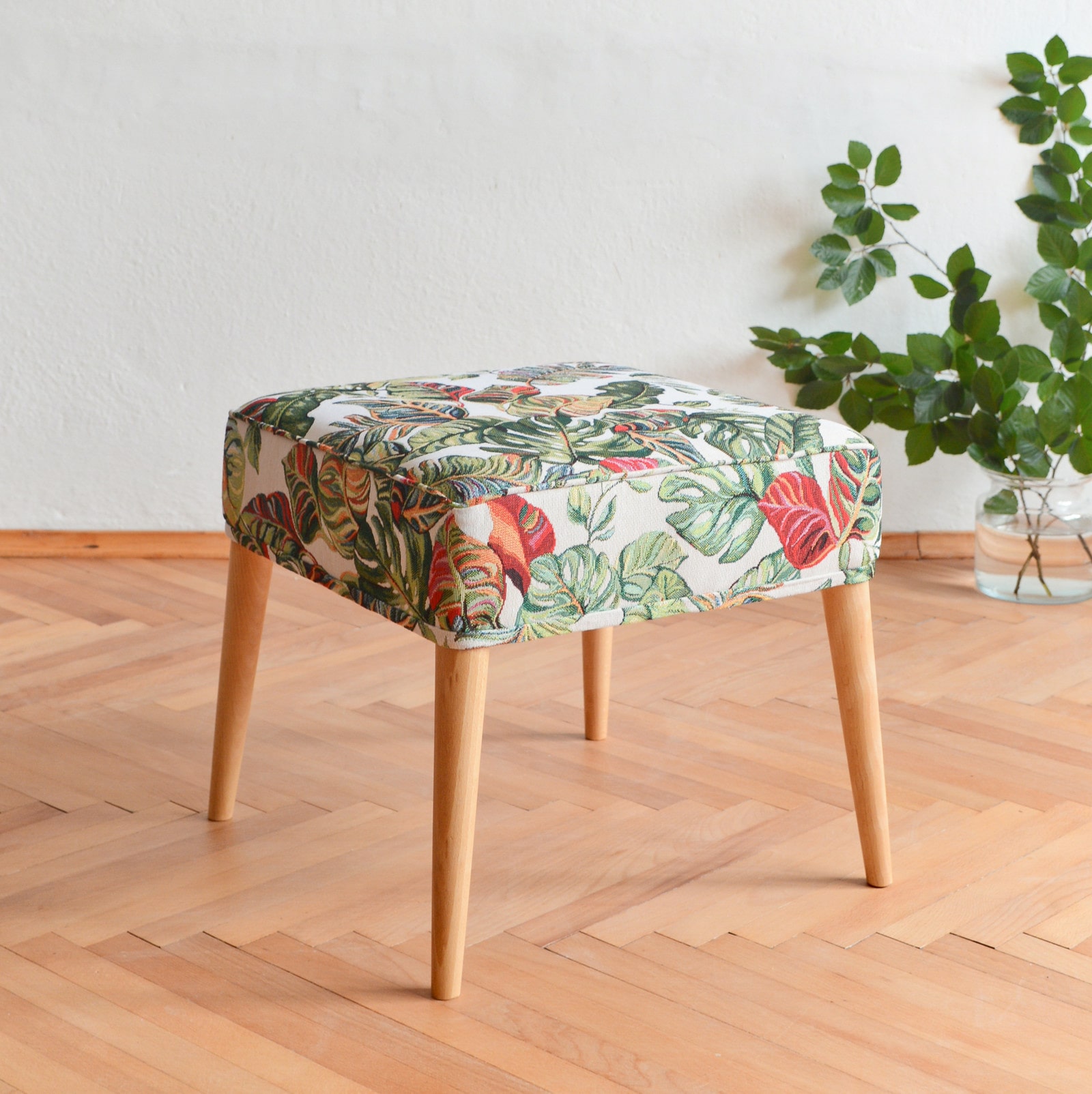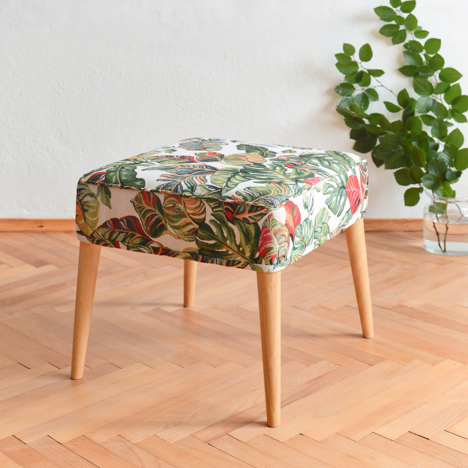 Bohatý listnatý vzor gobelínu, který doma rozhodně nepřehlédnete. Na smetanovém podkladu najdete i listy monstery. Čtvercový taburet, který snadno doplní vaše oblíbené křeslo nebo pohovku.