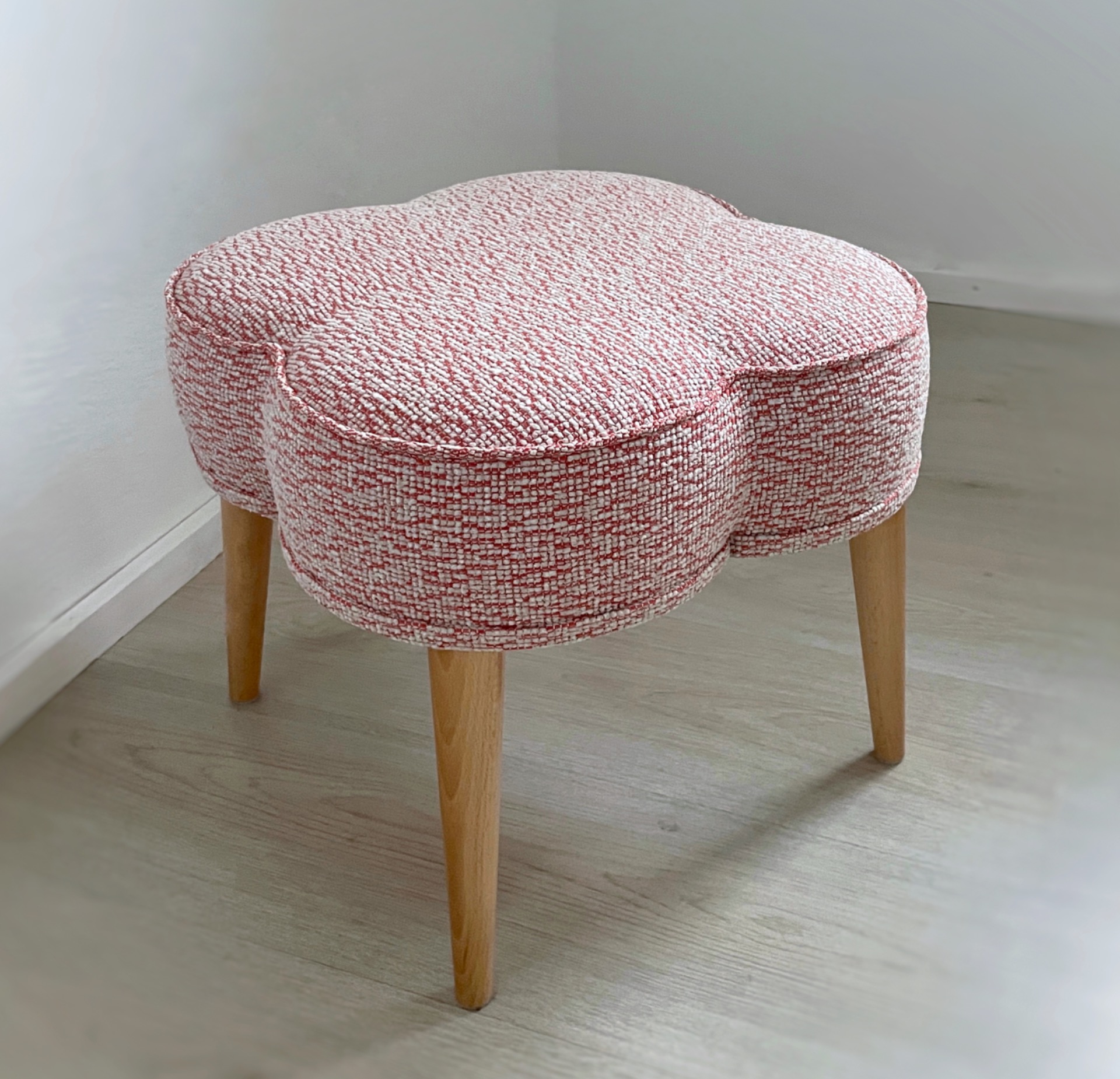 Strukturovaný čalouněný taburet ve tvaru čtyřlístku, který snadno doplní vaše oblíbené křesílko či pohovku. Ideální pomocník pod unavené nohy nebo jako místo navíc na sezení. Skvělý také jako nápaditý dárek.
