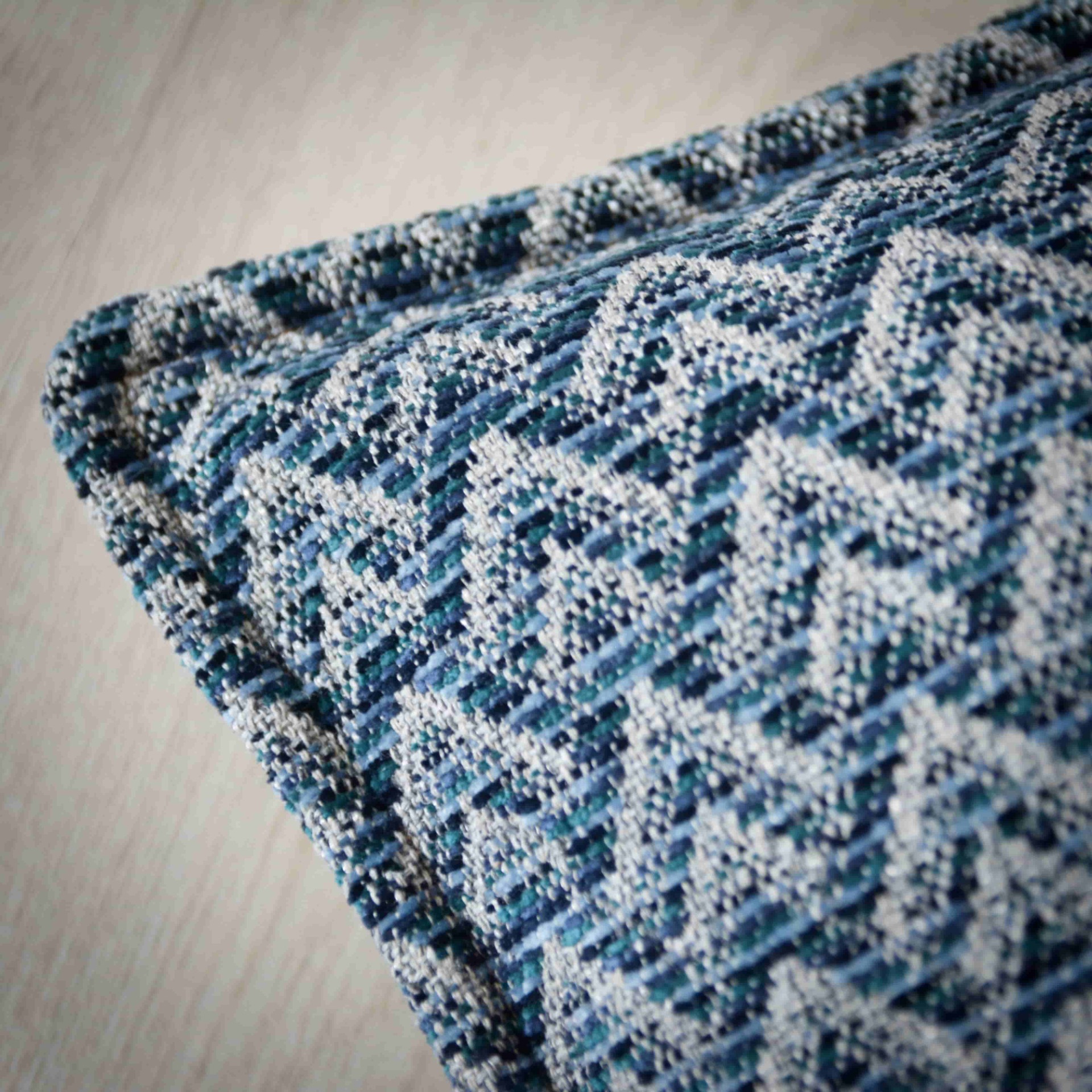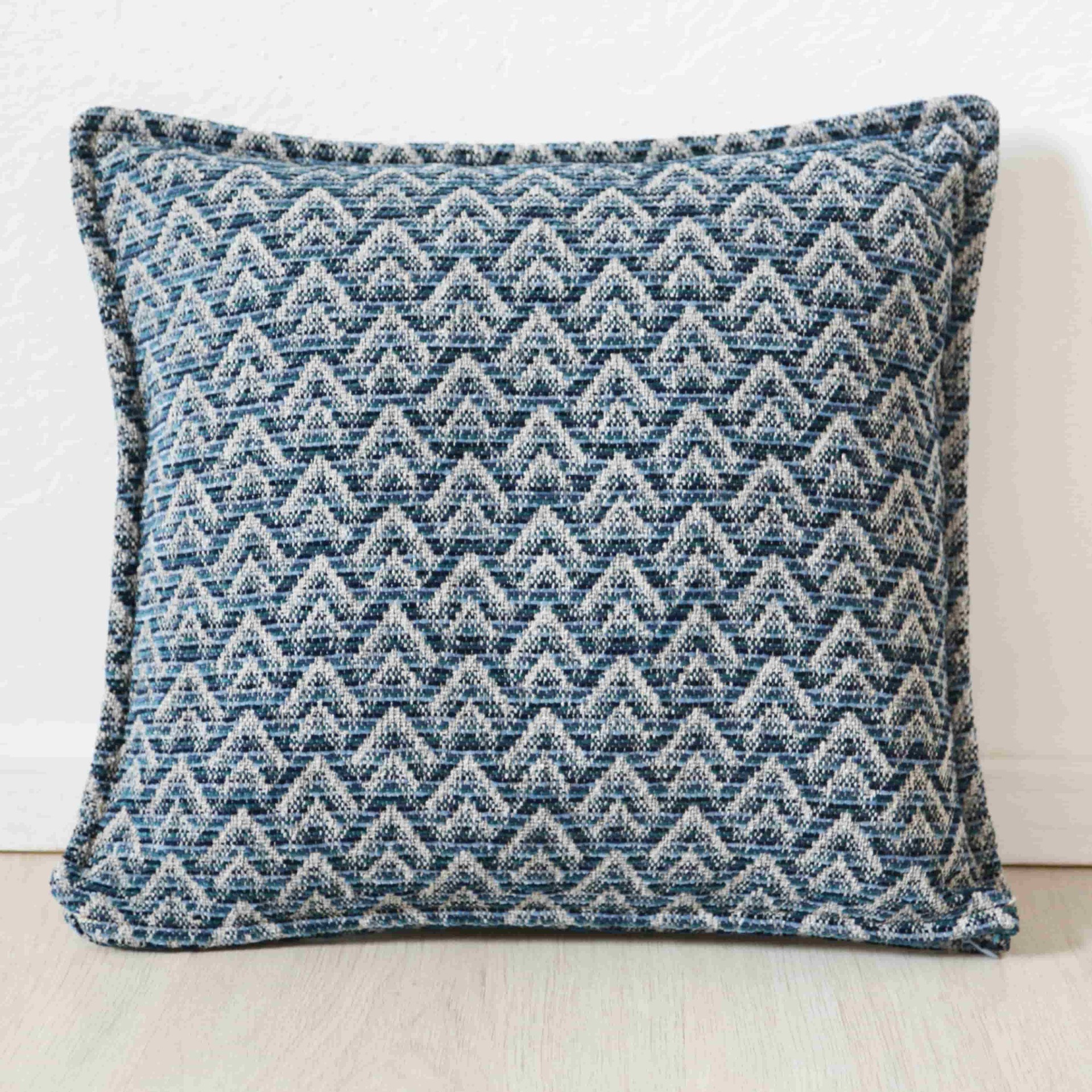 Nevšední potah na čtvercový polštář z tuhé žinylkové látky. Tmavě modrý tkaný geometrický vzor je na béžovém podkladu. Ozvláštní a zútulní domov. Doplňte si stylově vaše oblíbené křesílko nebo pohovku. Polštáře vám snadno doladí interiér.