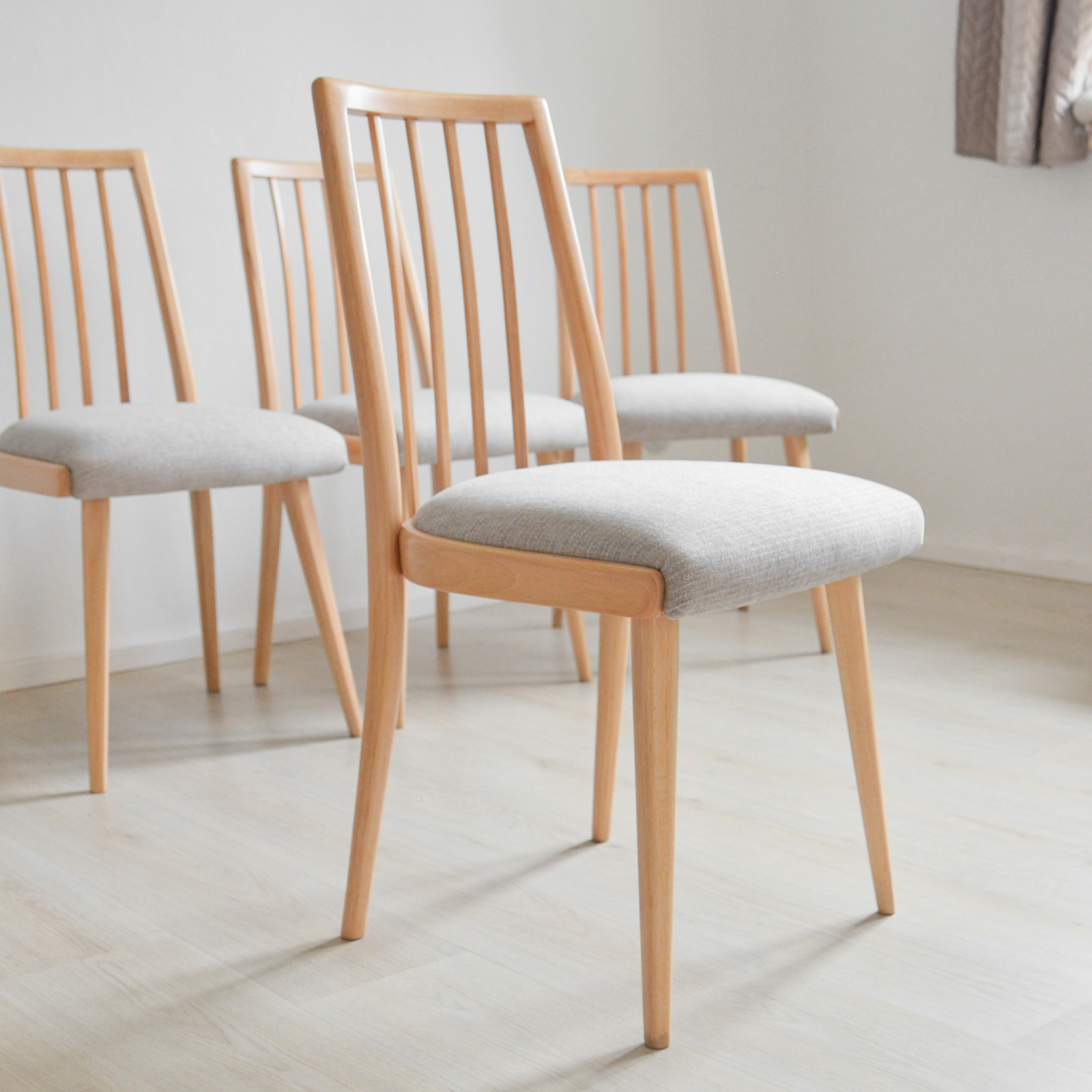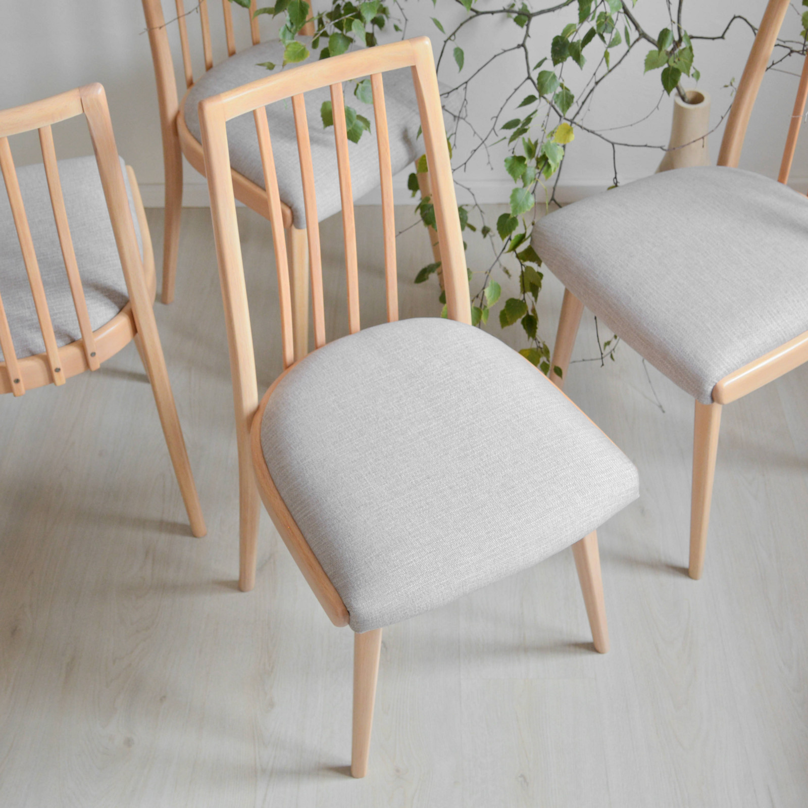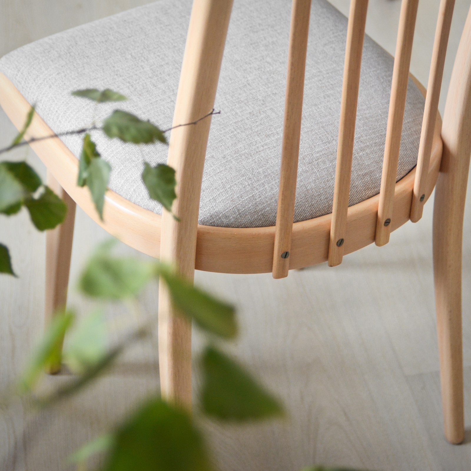 Dřevo jsme následně ošetřili tvrdým olejem na nábytek s bělící složkou. Ta ztlumila jakékoliv teplé odstíny, ale kresba dřeva zůstala patrná. Díky tomu je židle neutrální a snadno ji můžete kombinovat s ostatním nábytkem v interiéru.